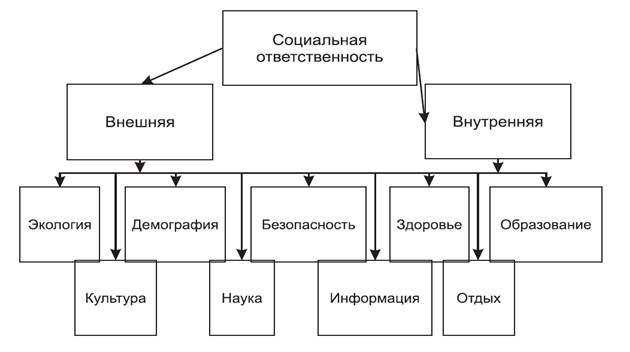 Сл.5 Корпоративная социальная ответственность в отличие от правовой подразумевает определенный уровень добровольного стремления выделять финансовые и материальные ресурсы на решение социальных проблем со стороны менеджмента организации. Это стремление имеет место но отношению к тому, что лежит вне определяемых законом или регулирующими органами требований или же сверх этих требований. Жизнеобеспечение общества обусловлено в процессах жизнедеятельности уровнем потребляемых ресурсов и производством материальных благ. Совокупность территорий, природных ресурсов, населения в среде его проживания составляет жизненное пространство общества, пространство деятельности организаций. Социальная ответственность менеджеров корпорации (топ-менеджеров), таким образом, состоит в организации и успешном управлении бизнесом, в постоянном поиске выгодных взаимодействий с государством. Плодами этого сотрудничества является сбалансированное и динамически развивающееся общество, в котором работа каждого члена общества выступает предпосылкой для общего благосостояния. В российском менеджменте все больше увеличивается число участников, которые считают, что социальная ответственность перед собственным персоналом и перед обществом — это не что-то исключительное, порождаемое лишь особыми обстоятельствами, а норма, вытекающая из самой сущности деятельности организации. Социальные аспекты деятельности становятся столь же неотделимы от нее, как и аспекты экономические. Сл.6 Объектами корпоративной социальной ответственности являются: экология, демография, безопасность, здоровье, образование, культура, наука, информация, отдых (рис. 1.1). Эти области развития человека и общества нуждаются в поддержке со стороны бизнеса, поддержке прежде всего экономической, а также политической, организационной.