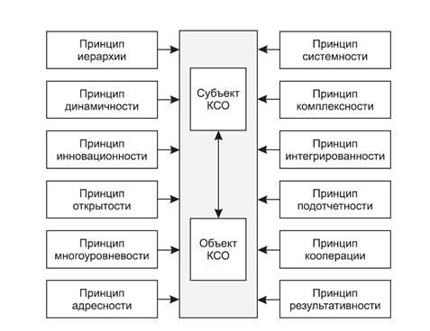 Рис. 2.4. Взаимодействие субъектов и объектов КСО на основе состава их принципов 3) 4) 5) 6) 7) Принцип инновационности мероприятий и технологий ее реализации — непрерывное их совершенствование и гармонизация. 8)