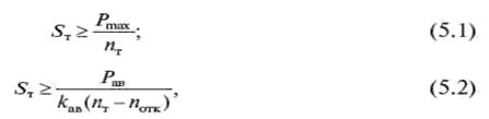 Выбор количества трансформаторов (АТ) зависит от требований к надежности электроснабжения питающихся от ПС потребителей. В практике проектирования на ПС рекомендуется, как правило, установка двух трансформаторов.Применение однотрансформаторных ПС допускается: в качестве первого этапа сооружения двухтрансформаторной ПС. При этом на период работы одного трансформатора должно быть обеспечено резервирование электроснабжения потребителей по сетям вторичного напряжения; для питания потребителей, допускающих перерыв электроснабжения на время, достаточное для замены поврежденного трансформатора (например, насосные станции орошения земель); Установка более двух трансформаторов (АТ) применяется: на ПС промышленных предприятий, если необходимо выделить по режиму работы толчковые нагрузки (например, электропечи); если целесообразно использование на ПС двух средних напряжений; если для покрытия нагрузки недостаточно предельной мощности двух трансформаторов по существующей шкале. на действующей двухтрансформаторной ПС при росте нагрузок сверх расчетного уровня по согласованию с заказчиком. если для повышения надежности электроснабжения потребителей по требованию заказчика целесообразна установка трех трансформаторов (например, на ряде ПС, обеспечивающих электроснабжение г. Москвы). Мощность трансформаторов выбирается по нагрузке пятого года эксплуатации, считая с года ввода первого трансформатора в работу. Мощность трансформаторов выбирается так, чтобы при отключении наиболее мощного из них на время ремонта или замены оставшиеся в работе (с учетом их допустимой по ТУ перегрузки и резерва по сетям СН и НН) обеспечивали питание полной нагрузки. Суммарная установленная мощность трансформаторов должна удовлетворять условиям где n т, S т — количество и единичная мощность трансформаторов; P max — максимальная нагрузка ПС в нормальном режиме; Р ав = P max − Р рез — нагрузка ПС в послеаварийном режиме после выхода из работы одного трансформатора; Р рез — часть нагрузки ПС, резервируемая по сетям вторичного напряжения; n отк — количество отключенных трансформаторов; К ав — допустимый коэффициент перегрузки трансформатора в аварийных случаях по стандартам и ТУ Выбор мощности трансформаторов классов напряжения до 110 кВ включительно производится согласно стандарту 14209—97. В соответствии со стандартом в аварийных случаях трансформаторы классов напряжения до 110 кВ включительно допускают перегрузку в 1, 4 номинальной мощности. Перегрузка допускается на время максимума нагрузки продолжительностью не более 4 ч в сутки при условии, что предшествующая нагрузка составляла не более 0, 8 номинального значения и температура охлаждающего воздуха во время перегрузки t = 20 °C. Поэтому для двухтрансформаторной ПС при отсутствии резервирования по сетям вторичного напряжения мощность каждого трансформатора должна быть не выше 0, 7 Р ав но не менее P max/2. Мощность однотрансформаторной ПС определяется максимальной нагрузкой трансформатора в нормальном режиме. При проектировании нескольких взаиморезервируемых однотрансформаторных ПС мощность трансформаторов на них должна выбираться таким образом, чтобы в послеаварийном режиме с учетом указанной выше перегрузки обеспечивалось резервирование по сети НН наиболее мощной из ПС. Выбор мощ