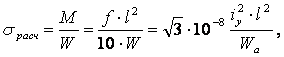 Наибольшее удельное усилие при трехфазном КЗ, определяется, Н/м: Так как расстояние между фазами значительно больше периметра шин а > > 2(b + h), то коэффициент формы kф = 1. Наибольшие электродинамические усилия возникают при трехфазном повреждении, поэтому в дальнейших расчетах учитывается ударный ток трехфазного КЗ. Индексы (3) для упрощения опускаются. Равномерно распределенная сила f создает изгибающий момент, (шина рассматривается как многопролетная балка, свободно лежащая на опорах), Н•м: где l — длина пролета между опорными изоляторами шинной конструкции, м. Напряжение в материале шины, возникающее при воздействии изгибающего момента, МПа: где W— момент сопротивления шины относительно оси, перпендикулярной действию усилия, см3 [1]. Шины механически прочны, если где Согласно ПУЭ