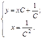Замечание. Теорема утверждает, что если Если из уравнений системы (4.2) удается исключить параметр C, то уравнение огибающей получается в явном виде, как Пример 4.1. Продифференцировав уравнение по параметру Красивый наглядный пример особого решения дает уравнение Клеро, имеющее вид