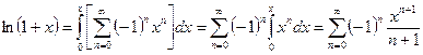 Используя возможность почленного интегрирования степенных рядов (теорема 12.3), найдем разложения для функций