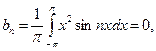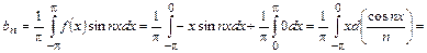 поскольку интеграл по симметричному интервалу берётся от нечётной функции. Ряд Фурье имеет вид