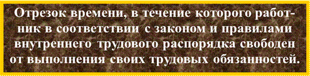 | Свободное от основной работы время (ст. 60.1 ТК РФ). В течение учетного периода продолжительность рабочего времени не должна превышать половину нормы рабочего времени, установленной для соответствующей категории работников (ст. 284 ТК РФ)