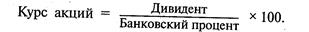 Мы уже знаем что акционерное общество - это форма организации предприятия, денежные средства которого образуются путем продажи акций. Созданием акционерных обществ занимаются предприниматели-учредители при активном участии банка. Они вкладывают в фирму собственный капитал, а для привлечения дополнительных средств выпускают акции, которые продаются всем желающим. Акция - это ценная бумага, которая свидетельствует о внесении ее владельцем пая в капитал (фонды) акционерного предприятия и дает ему право на получение дивиденда - дохода, приходящегося на акцию. В виде дивиденда распределяется лишь часть прибыли корпорации. Другая ее часть обычно идет в накопление (для пополнения резервного капитала и на расширение производства). Она также расходуется на выплату высоких должностных окладов и особых премий (тантьем) руководящему персоналу корпорации, уплату налогов государству, на рекламу и иные цели. Сумма, обозначенная на акции, составляет ее номинальную стоимость. Она определяется так: сумма реального капитала, вложенного в действующее акционерное предприятие, делится на число акций. Но купля-продажа акции происходит не по такому номиналу, а по ценам, стихийно складывающимся на рынке ценных бумаг. Цена, по которой акция продается и покупается, называется курсом акции. Курс акции зависит от двух факторов: от величины дивиденда и от ставки депозитного процента. Естественно, что курс акции тем выше, чем больше дивиденд. Между тем перед человеком, который думает купить акцию, возникает альтернатива: а) отдать деньги в ссуду, положить в банк или получать более устойчивый депозитный процент; б) купить акцию, которая дает в виде дивиденда значительно большую сумму, чем депозитный процент. Например, рыночная цена акций “Дженерал мотора” в 80-е годы в 25 раз превысила их номинальную стоимость. Эту альтернативу в значительной мере решает следующий курс: акция продается за такую сумму, которая, будучи превращена в банковский депозит, принесет доход (в виде процента по депозиту), равный дивиденду. Поэтому цена акции исчисляется по формуле