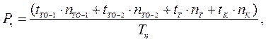 где соответственно ТО-1, ТО-1, текущего и капитального ремонтов, дн;