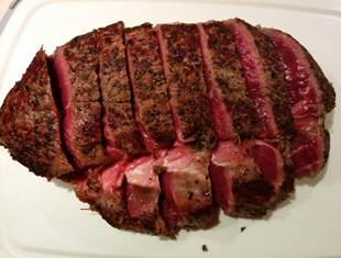 кусок говядины натереть соль, перцем, травками с и убрать на сутки в холодильник.