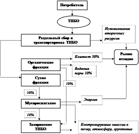 Рис. 7.2 Реальная ХТС переработки ТПБО в развивающихся странах
