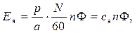 где M 2 – полезный тормозной момент приводного механизма (момент нагрузки на валу); M 0 – момент холостого хода от потерь в самом двигателе (механиче- ских потерь и потерь в стали). Если нарушается равенство (16.2), то частота вращения двигателя уменьшается или увеличивается до тех пор, пока момент двигателя не будет уравновешен моментом нагрузки на валу. При вращении двигателя проводники обмотки якоря пересекают линии магнитной индукции поля полюсов и в них по закону электромагнитной индукции индуктируется ЭДС, величина и направление которой определяется так же, как и у генератора, т.е. она равна: