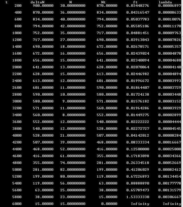 Nt = N - deltaN(s) ft = deltaN(s)/Nt lambda = (deltaN(s))/((N-deltaN(s))*500)