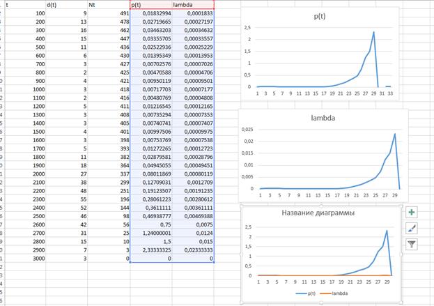 ЗАДАЧА №2 1) Найти статистическое распределение плотности вероятности отказов и Работа Романа статистическую кривую интенсивности отказов 500 блоков питания для ПЭВМ, испытанных на эксплуатационном режиме до полного отказа всех блоков. Отказы блоков питания подсчитаны через каждые 100 часов, результаты сведены в таблицу. 2)