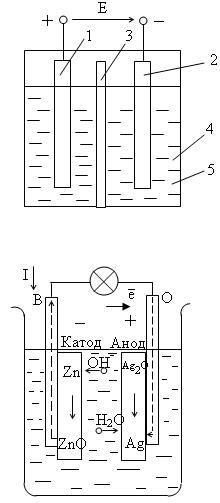 - на аноде - восстановление окиси серебра, который является окислителем, т.е. атом серебра принимает электроны и восстанавливается до валентно нейтрального серебра с образованием гидроокислительной группы ОН ˉ