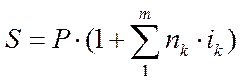 де S – “реальна” нарощена сума з урахуванням інфляції; k – темп інфляції. Таким чином, формула, яка відображає приріст капіталу на основі складних процентів з урахуванням темпів інфляції буде мати наступний вигляд: