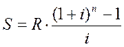 де S – нарощена сума ренти; R – розмір платежу (члена) ренти; i – ставка процентів по ренті; n – строк ренти.