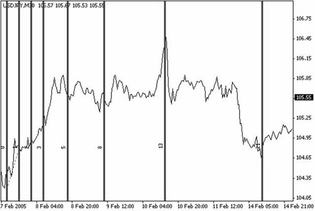 Рис. 19. Приклад часових періодів Фібоначчі