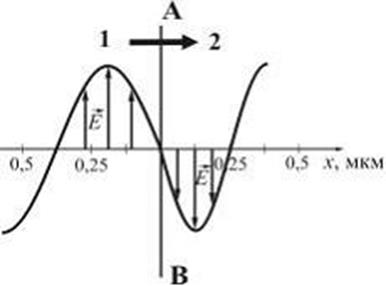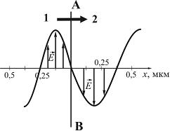Тема: Волны. Уравнение волны На рисунке представлена мгновенная фотография электрической составляющей электромагнитной волны, переходящей из среды 1 в среду 2 перпендикулярно границе раздела сред АВ.