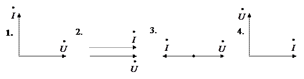 56. Какая из векторных диаграмм отражает включение ёмкости в цепь синусоидального тока?
