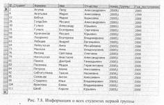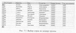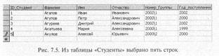 В этом примере из таблицы «Студенты» базы данных «Сессия» было выбрано 5 первых строк (рис. 7.5):