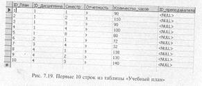 SELECT ТOP 10 Наименование, Семестр, Количество_ часов FROM Учебный_ план Дисциплины. WHERE (Учебный_ план. ID_Дисциплина Дисциплины. ID_ Дисциплина)