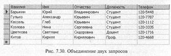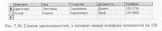 В результате выполнения запроса получим выборку, показанную на рис. 7.29.