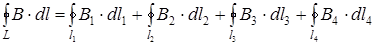 Из рис. 2.3 видно, что суммирование вдоль участков l 1, l 3 и l 4 равно нулю, поскольку вектор индукции в этих случаях либо перпендикулярен отрезкам dl i, либо равен нулю (вне соленоида). Таким образом,