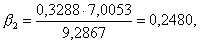 Сравнивая полученное уравнение с уравнением (3.4), можно определить стандартизованные частные коэффициенты уравнения, или так называемые бета-коэффициенты. Вычислив бета-коэффициенты для уравнения, полученного в примере, получаем: