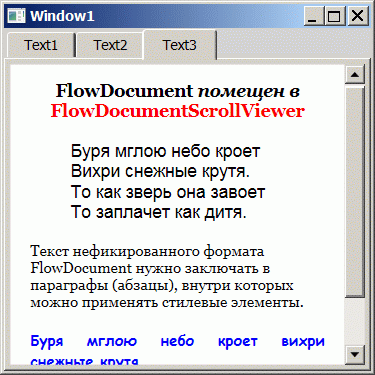 Использование контейнера FlowDocumentScrollViewer