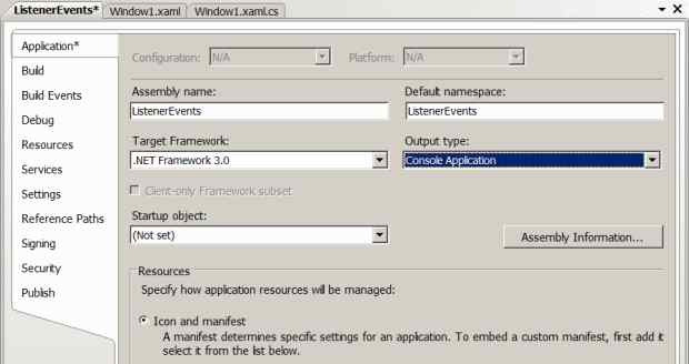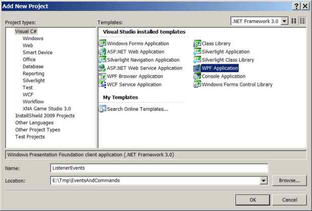 Добавьте к решению командой File/Add/New Project новый проект с именем ListenerEvents и назначьте его стартовым