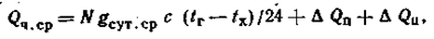где N число жителей; gcyт.cp — расход горячей воды одним жителем в сутки отопительного сезона, кг/(сут-житель) [ в нормах этот расход дан в л/{ сут-житель), но при плотности воды р=1000 кг/м3 численные значения л/(сут-житель) и кг/(сут житель) совпадают ]; с —удельная теплоемкость воды, равная 4, 19 кДж/(кг-°С); tг — средняя температура воды в водоразборных стояках систем горячего водоснабжения, принимаемая равной 55°С; tx — температура холодной воды в водопроводе, принимаемая при отсутствии особых указаний в задании на проектирование равной 5°С; При проектировании централизованного теплоснабжения диаметры и длины трубопроводов местных систем горячего водоснабжения обычно бывают еще неизвестны и потому значения