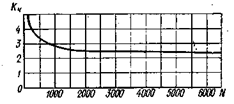 Рис. 1.4. Зависимость коэффициента максимальной часовой неравномерности потребления горячей воды Кч от числа жителей N