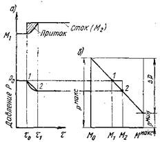 Рис. 7.1. Схема регулятора давления 1 — регулирующий (дроссельный) орган; 2 — мембранно-грузовой привод; 3 — импульсная трубка; 4 — объект регулирования — газовая сеть Рис. 7.2. График астатического.регулирования при отсутствии самовыравнивания
