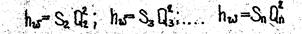 Рис. Параллельное соединение трубопроводов (1, 2, 3…n - ветви трубопроводов). Потери напора в любой трубе ответвления одинаковы, так как в обеих общих (крайних) точках разветвления имеется, один и тот же напор H1 и общий конечный напор H2, т.e. hw=H1-H2=hw1=hw2=hw3. Для первой ветви можно записать hw=S1Q12. Аналогично для других ветвей имеем
