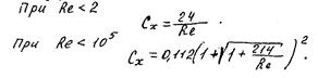 При Re< 2 скорость витания определяется по уравнению Стокса: