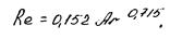 Для расчетов может быть использована и единая интерполяционная зависимость, связывающая критерии Re и Ar для всех режимов осаждения: