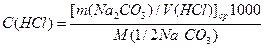 молярную концентрацию эквивалента с(НС1), титр по гидроксиду натрия Т(НС1 / Na2CO3) по формулам: