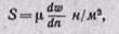 где w — средняя скорость жидкости, м/сек; d — диаметр круглой трубы, м; v — коэффициент кинематической вязкости жидкости, м2/сек. Для канала произвольного сечения вводится понятие эквивалентного диаметра dэкв (см. § 27-1), который и подставляется в выражение для критерия Re. Подставляя размерности отдельных величин в критерий Re, легко убедиться, что он является величиной безразмерной. До значений Re = 2300 поток жидкости в трубе остается ламинарным, при больших значениях Re поток переходит в турбулентный. Ламинарный поток является устойчивым только в докритической области (до Re — 2300). При некоторых специальных мерах предосторожности ламинарное движение можно наблюдать при числах Re, значительно превышающих критическое. Однако такой режим движения является неустойчивым и при малейшем возмущении потока переходит в турбулентный. Характер движения жидкости влияет на интенсивность передачи тепла. При ламинарном режиме и отсутствии естественной конвекции тепло в перпендикулярном к стенке направлении передается только теплопроводностью. Количество этой теплоты зависит от физических свойств жидкости, геометрических размеров, формы поверхности канала и почти не зависит от скорости. При турбулентном движении жидкости перенос теплоты наряду с теплопроводностью осуществляется перпендикулярным к поверхности канала перемещением частиц. Физические свойства жидкостей В качестве жидких теплоносителей в технике применяют различные вещества: воздух, воду, газы, масло, нефть, спирт, ртуть, расплавленные металлы и многие другие. В зависимости от физических свойств этих веществ процессы теплоотдачи протекают различно. Большое влияние на теплообмен оказывают следующие физические параметры: коэффициент теплопроводности λ, удельная теплоемкость с, плотность р, коэффициент температуропроводности а и коэффициент динамической вязкости ц. Эти параметры для каждого вещества имеют определенные значения и являются функцией температуры, а некоторые из них и давления. Величины Я, с, а и р уже рассматривались в предыдущих параграфах. В исследованиях конвективного теплообмена большое значение имеет также вязкость. Все реальные жидкости обладают вязкостью; между частицами или слоями, движущимися с различными скоростями, всегда возникает сила внутреннего трения (касательное усилие), ускоряющая движение более медленного слоя и тормозящая движение более быстрого. Величина силы трения 5 между слоями, отнесенная к единице поверхности, согласно закону Ньютона, пропорциональна градиенту скорости dw/dn по нормали к направлению движения потока. Следовательно,