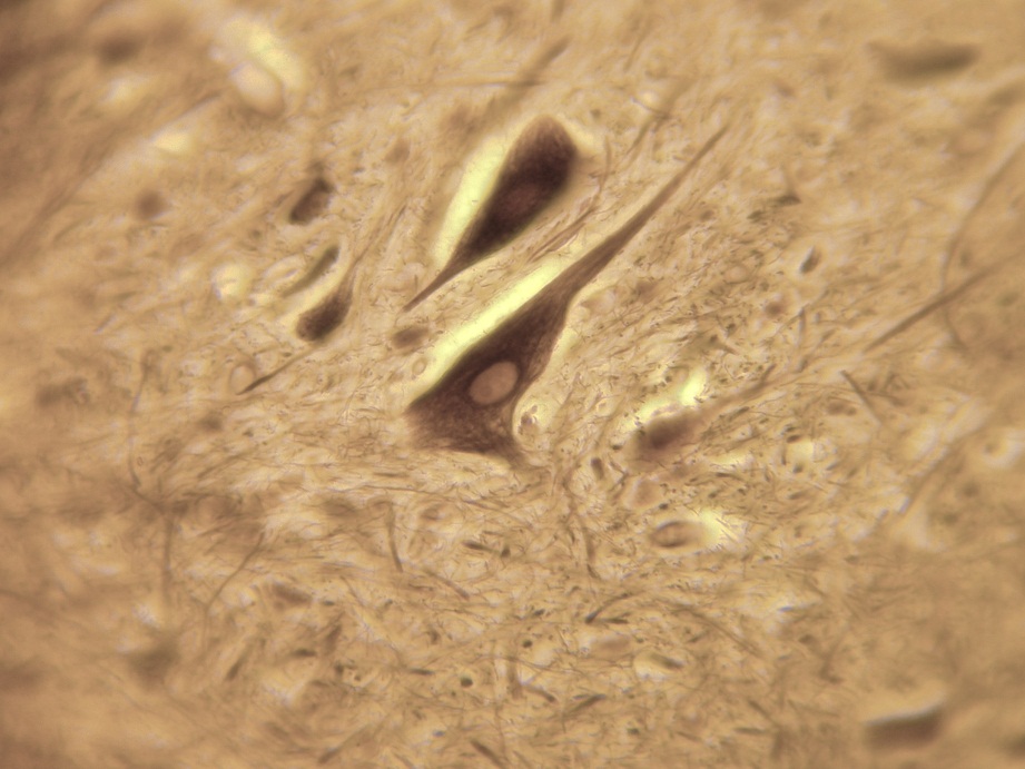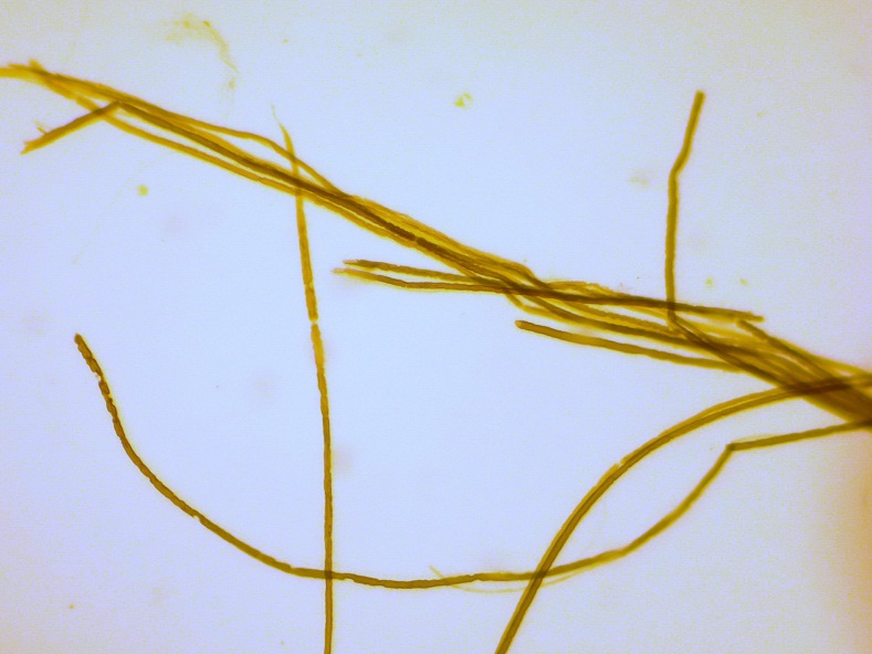 Миелиновые нервные волокна. Седалищный нерв. Пленочный препарат. Осмиевая кислота. Малое увеличение.