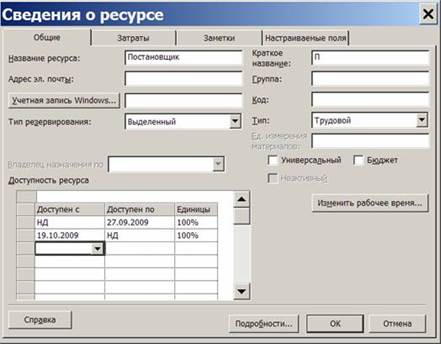 Перегрузка ресурсов – превышение в процессе планирования максимально возможного для этого ресурса объема назначения, предусмотренного в определенный промежуток времени. Максимальный объем назначения указывается в окне свойств ресурса на вкладке Общие совместно с графиком доступности (рис.7.1). При планировании система не препятствует создавать назначения больше заданного максимального уровня, но считает их как перегрузку ресурса.