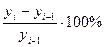 При этом возможны два варианта сопоставления: 1. каждый уровень динамического ряда сравнивается с одним и тем же, часто начальным уровнем. Такое сравнение называется сравнением с постоянной базой, а получаемые показатели – базисными, характеризующими окончательный результат всех изменений от базисного до данного (i-го) периода; 2. каждый уровень динамического ряда сравнивается с непосредственно ему предшествующим. Такое сравнение называется сравнением с переменной базой, а получаемые показатели – цепными, характеризующими изменение уровня от периода к периоду в пределах изучаемого промежутка времени. Абсолютный прирост (абсолютное изменение) уровней (∆ i) рассчитывается как разность между двумя уровнями ряда. Он показывает, на сколько (в единицах измерения показателей ряда) уровень одного периода больше или меньше уровня какого-либо предшествующего периода, и, следовательно, может иметь знак «+» (при увеличении уровней) или «-» (при уменьшении уровней). базисный ∆ i(б)=yi - y0 (1) цепной ∆ i(ц)=yi – yi-1 (2) Цепной абсолютный прирост называется скоростью роста. Если значения цепных абсолютных приростов (изменений) постоянны, то уровни ряда изменяются равномерно. Если же абсолютные приросты от периода к периоду возрастают (или убывают), то уровни изменяются ускоренно (или замедленно). В этом случае можно рассчитать показатель ускорения как разность между двумя смежными цепными абсолютными приростами: ∆ ∆ = ∆ I - ∆ i-1 (3) Темпы роста (изменения) (Тр) – относительный показатель, рассчитываемый как процентное отношение двух уровней ряда. Темпы роста как относительные величины могут выражаться в виде коэффициентов, т.е. простого кратного отношения (если база сравнения принимается за единицу), и в процентах (если база сравнения принимается за 100 единиц). Чаще всего, говоря о темпах, имеют в виду отношение уровней в процентах. Выраженные в коэффициентах темпы роста показывают, во сколько раз уровень данного периода больше уровня базы сравнения или какую часть его составляет. При процентном выражении темп роста показывает, сколько процентов составляет уровень данного периода от уровня базы сравнения. В зависимости от базы сравнения коэффициенты роста (Кр) могут рассчитываться как базисные при сравнении с постоянной базой: Кр(б)= и как цепные при сравнении с переменной базой: Кр(ц)= Между цепными и базисными коэффициентами роста существует связь, позволяющая при необходимости переходить от цепных к базисным и наоборот, в частности: