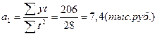 Система нормальных уравнений и, соответственно, расчет параметров При четном числе уровней два серединных момента (периода) времени обозначают -1 и +1, а все последующие и предыдущие, соответственно, через два интервала: При таком порядке отсчета времени (от середины ряда)