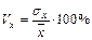 . Свойства дисперсии: · Если значения не отличаются друг от друга (равны между собой) — дисперсия равна нулю. Это соответствует отсутствию изменчивости в данных. · Прибавление одного и того же числа к каждому значению переменной не меняет дисперсию: · Прибавление константы к каждому значению переменной сдвигает график распределения этой переменной на эту константу (меняется среднее), но изменчивость (дисперсия) при этом остается неизменной. · Умножение каждого значения переменной на константу с изменяет дисперсию в с2 раз: · При объединении двух групп с одинаковой дисперсией, но с разными средними значениями дисперсия увеличивается. Например, если одна группа содержит значения: 1, 1.1, 1, 1, а другая группа — значения 3, 3, 3, 3, 3, то дисперсии этих групп одинаковы и равны 0. Если же объединить эти две группы, то дисперсия будет равна не 0, а 1. Дисперсия имеет размерность, равную квадрату размерности СВ. Чтобы представить разброс значений СВ в тех же единицах, что и саму СВ, используется среднее квадратическое отклонение, которое определяется как квадратный корень из дисперсии и традиционно обозначается Чтобы оценить разброс значений СВ в процентах относительно ее среднего значения вводится коэффициент вариации Vx, рассчитываемый по формуле: