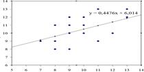 Случай, разобранный сейчас, самый простой. Аналогично выводятся коэффициенты в уравнении множественной линейной регрессии, только вывод будет более громоздким. Вывод уравнения имеет важное теоретическое значение, но этот процесс, естественно, можно переложить на компьютер. Таким образом, если на некоторой выборке измерены две переменные, которые коррелируют друг с другом, то, вычислив коэффициенты регрессии, мы получаем возможность предсказания неизвестных значений одной переменной (y – «зависимая переменная») по известным значениям другой переменной (x – «независимая переменная»). Понятно, что наиболее точным предсказание будет, если | r xy| = 1. Тогда каждому значению x будет соответствовать только одно значение y, а все ошибки оценки будут равны 0 (все точки на графике рассеивания будут лежать на прямой регрессии). Если же r xy = 0, то a1 = 0 и у i= a 0(= у ср), т. е. при любом x оценка переменной y будет равна ее среднему значению и предсказательная ценность регрессии ничтожна. Следует отметить, что на коэффициент линейной корреляции влияют выбросы (экстремально большие или малые значения признака) так как величина этого коэффициента прямо пропорциональна отклонению значения переменной от среднего. Способы борьбы с выбросами: 1) «чистка» данных. Можно для каждой переменной установить определенное ограничение на диапазон ее изменчивости. Например, исключаете наблюдения, которые выходят за пределы диапазона xcр±2σ или.xcр±3σ. 2) применение ранговых коэффициентов корреляции.