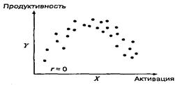 Довольно часто в исследованиях встречаются немонотонные связи — когда связь меняет свое направление (с прямого на обратное, или наоборот) при увеличении или уменьшении значений одной из переменной. Типичный пример —это связь уровня активации (X) и продуктивности деятельности (Y). Любой из рассмотренных коэффициентов корреляции будет в этом случае иметь значение, близкое к нулю.