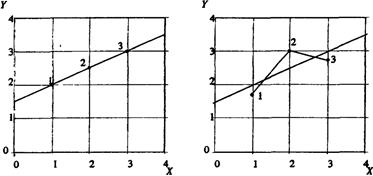 Здесь D (e) – необъясненная дисперсия зависимой переменной вокруг линии регрессии. Естественно, что вместе с ней растут и дисперсии коэффициентов уравнения регрессии. Из рисунка ясно, что при D (e) > 0 уменьшение диапазона изменения независимой переменной (сближение точек 1 и 3) приведет к возрастанию погрешности. Чем больше абсолютные значения x, тем сильнее изменится дисперсия свободного члена a при изменении наклона регрессионной прямой.