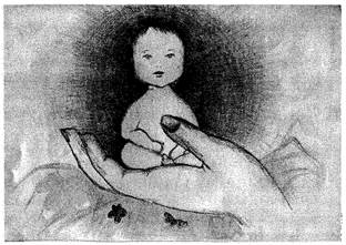 переживании материнских чувств, восприятии беременности как гармоничного, ресурсного состояния. Приводимые в качестве примера работы также могут рассматриваться в качестве особого средства символической, образной коммуникации женщины с ребенком. Есть основания предполагать, что как в процессе, так и после их создания женщины могли вести с ребенком некий «внутренний диалог», стараясь выразить свои чувства и мысли в «общении» с ним. Анжела Т. (беременность 27 недель, второй ребенок) представила три работы: «Рождение», «Мой ребенок» и рисунок без названия. На первом рисунке изображено гнездо с вылупившимися птенцами, обогреваемыми оранжево-красным солнцем. Второй рисунок выполнен с использованием основных цветов. Оранжево-желтое солнце ровным теплом согревает ребенка в ладони матери. Изображение оставляет впечатление зрелого материнства. Коррекция психофизиологического состояния беременных женщин