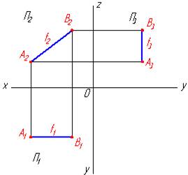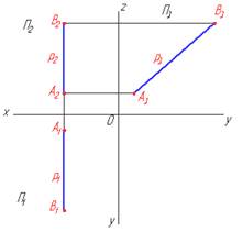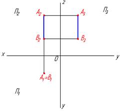 Рис. 2.2.7. Три проекции профильно-проецирующей прямой