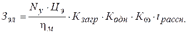 где Сч.с. — часовая тарифная ставка; Кд = 1, 2 — коэффициент дополнительной заработной платы; Кн = 1, 39 — коэффициент отчислений в общественные фонды: tрассн. — время расснаряжения; nраб — число рабочих на установке. 2. затраты на электроэнергию: