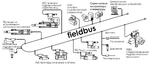 Рис. 10. Сетевая шина Fieldbus Для связи ПК с различными компонентами электрогидравлики той или иной конкретной машины в единый функциональный комплекс используются сетевые шины Fieldbus и др. (рис. 10), обеспечивающие защиту от электромагнитных помех, стандартизацию протокола, снижение стоимости кабелей, расширение возможностей диагностики и дистанционного обслуживания. Фирма успешно работает также над созданием электрогидравлики коррозионно-стойкого и взрывобезопасного исполнений для нефтегазовой, трубопроводной, горной и др. отраслей; все изделия сертифицированы в соответствии с международными и национальными стандартами. Высочайшие характеристики регулирования достигаются при применении дросселирующих гидрораспределителей.