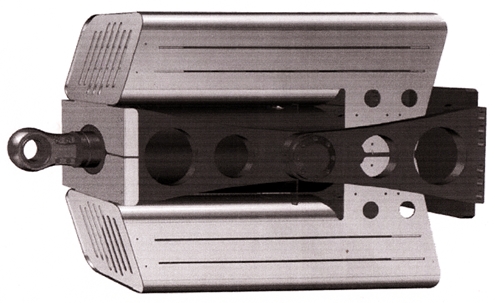 Рис. 12. Привод ЕНА фирмы Moog На выставке в Нюрнберге (ноябрь 2011 г.) демонстрировался прототип привода (рис. 12), содержащий объединённые в едином блоке сервоцилиндр, насос, гидроблок с аппаратурой, аккумулятор, контроллер и программное обеспечение. ЕНА получает электроэнергию по проводам и преобразует входной сигнал в движение, причём приводной электродвигатель вращается только в процессе выполнения заданной команды и через гидравлическую трансмиссию перемещает шток цилиндра в требуемом направлении. Отсутствие шариковинтовых передач, редукторов и соединительных трубопроводов позволяет снизить на 40% вес, уменьшить стоимость и износ, повысить надёжность, обеспечить комплектную поставку и полностью исключить загрязнение окружающей среды. Продолжают совершенствоваться системы управления. Интерфейс SERCOS фирмы Bosch Rexroth позволяет одновременно управлять электрическими и гидравлическими осями, причём программа управления может контролироваться и изменяться, в том числе по телефону или через Интернет. Система МАС-8 той же фирмы хорошо адаптирована для управления 32-мя гидравлическими и электрическими осями в режиме online с учётом специфики гидроприводов.