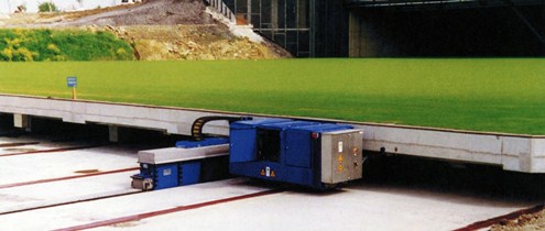 Рис. 29. Электрогидравлический гексапод для испытаний подвески автомобилей По сравнению с аналогичным оборудованием Одесского завода прессов установка в 3, 5 раза меньше по массе и занимаемой площади. Модификация УРКТ1 (рис. 28) позволяет производить демонтаж элементов колёсных пар с приложением усилия раздельно или одновременно к торцу оси и ободу колеса. Электрогидравлический гексапод (рис. 29) для испытаний подвески автомобилей укомплектован шестью сервоцилиндрами фирмы Hä nchen. Ярким примером решения нестандартных задач компанией Neumeister Hydraulik является устройство гидравлического управления футбольным полем (!), где с помощью специального гидропривода возможно перемещение бетонной плиты весом 12 500 тн и размером 80× 120 м внутрь стадиона или при необходимости - из него (рис. 30). Общие перспективы применения гидроприводов в машиностроении XXI века не вызывают сомнений, однако в области металлообработки они зависят от направления развития соответствующей подотрасли. Впрочем, постоянно расширяющееся использо-вание малоотходных технологий (штамповки, вырубки, гидроформования, выдавливания, прессования, спекания, литья и др.), а также комбинированных методов формообразования при общей тенденции повышения нагрузок и быстродействия основных станочных механизмов, несомненно, будут способствовать созданию гидроприводов нового поколения, в том числе со сверхвысоким давлением.